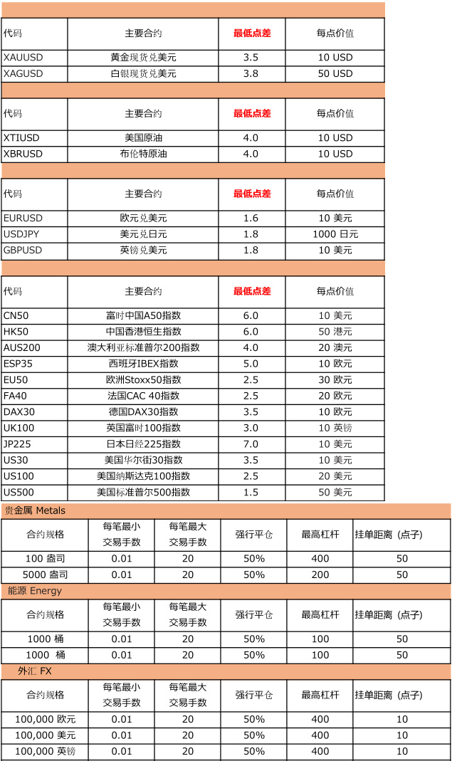 | 最大杠杆 | 外汇杠杆400倍 指数100倍 |